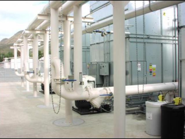 Cooling Towers, three water cooled Chillers, four secondary and primary Chilled